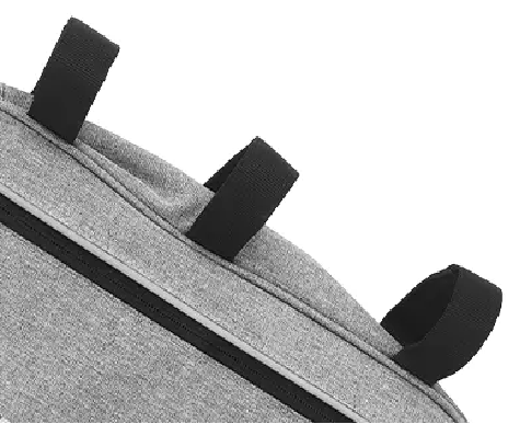 Szara trójkątna torba na górną rurę roweru szosowego BI-03 ma wiele kieszeni ze strategicznie zaprojektowanymi przegródkami do wygodnego przechowywania przedmiotów takich jak telefony, portfele, klucze i butelki z wodą. Ma wymiary 34 x 6,5 x 26 cm i mieści 5,75 l. Jest wyposażony w odblaskowe paski zwiększające bezpieczeństwo podczas jazdy nocą i można go dostosować za pomocą logo. Wodoodporny zamek błyskawiczny z boku ułatwia przenoszenie.