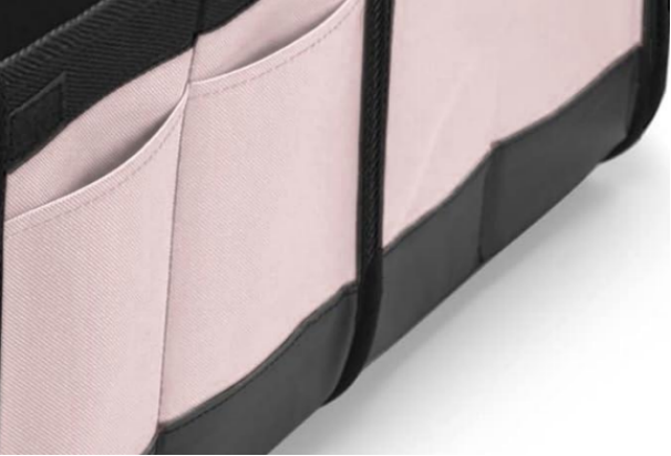 Odpowiedź: Ten schowek ma wiele bocznych kieszeni i trzy główne przegródki, w których można skutecznie przechowywać różne drobne przedmioty, takie jak klucze i zabawki, utrzymując porządek w bagażniku samochodu.